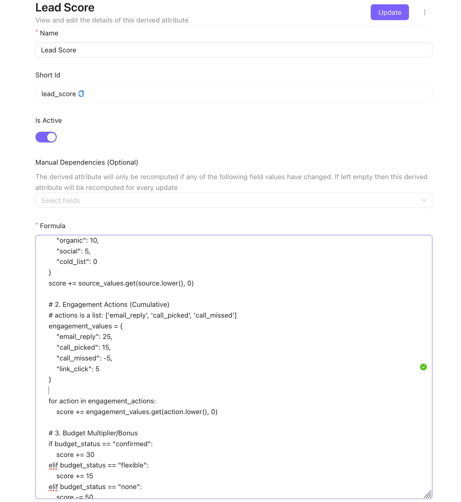 Clean and updated pipeline: Clean and updated pipeline: Regular follow-up forces CRM hygiene - stages get updated, disqualified leads are removed, and actionable opportunities float to the top.